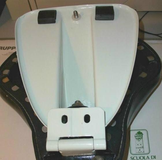 ciao ragazzi vorrei togliermi ogni dubbio riguardante il colore del telaio della sella in questione. L'ho acquistata da p4scoli e mauro mi ha detto che il "piantone", in pratica il pezzo dove viene fissata la molla e il piatto che ricopre il porta oggetti, deve essere verniciato color alluminio ruote. Su google immagini pero vedo selle originali con questo pezzo verniciato in tinta come del resto il piatto e il portapacchino... allego qualche foto....