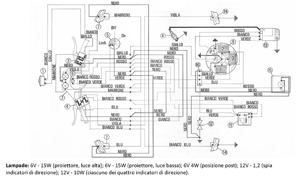 Ora ho il dubbio, avendo messo tutte lampadine da 12 V, cosa succede se provo ad accendere la vespa e a collegare i file blu con clu, verde con verde, nero con vero e a ponticellare il blu con il giallo ?