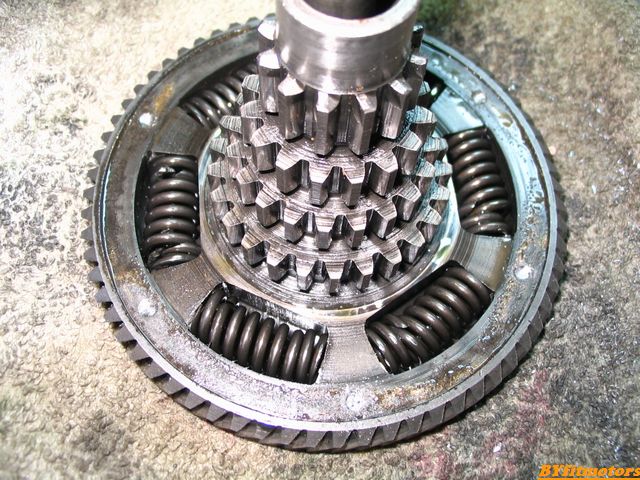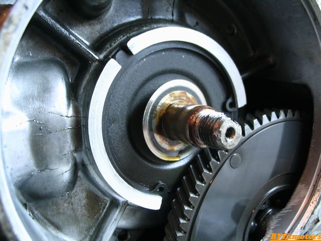 Piatto ganasce e parapolvere tolti rivelano la mancanza del paraolio... Immagine: