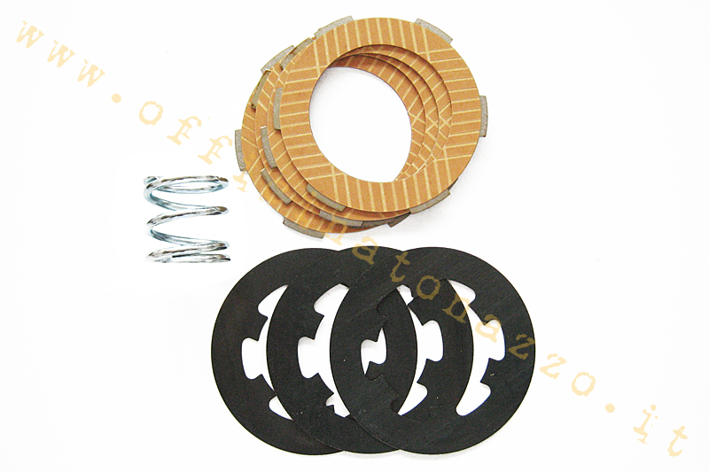 ciao si siamo abbastanza vicini si la frizione è regolata con un leggero gioco ora ho provato a riaprirla e ho asciugato i dischi perche erano proprio allagati e ho cambiato molla con quella fornita dal kit ma la molla polini nn è molto dura ho verificato.....molto piu dura quella del kit vedremo come va |