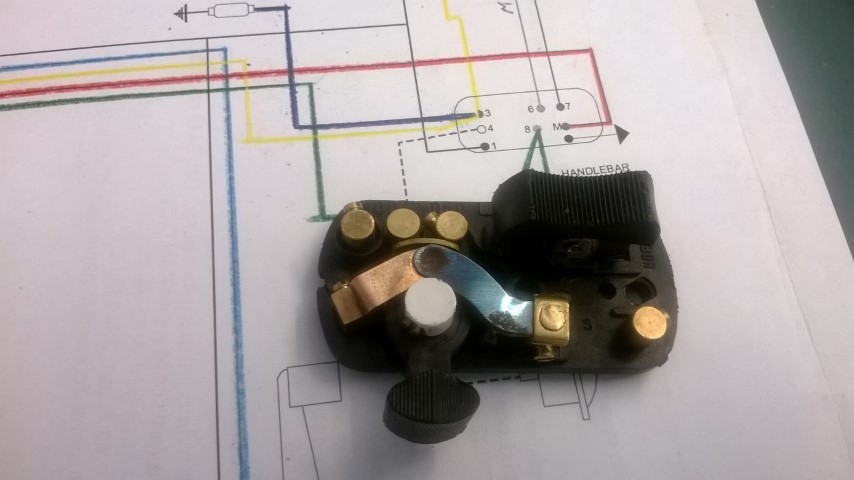 Poi la bobina a sinistra del condensatore è quella che alimenta il faro (e clacson) ha un capo a massa e l'altro arriva al contatto 8 del devio