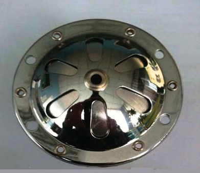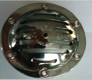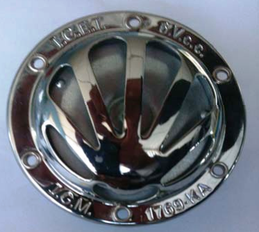 Codice Piaggio 097828 Clacson GPM MILANO, mascherina in ottone cromata, diametro 72 con 4 buchi per il fissaggio, 6VAC