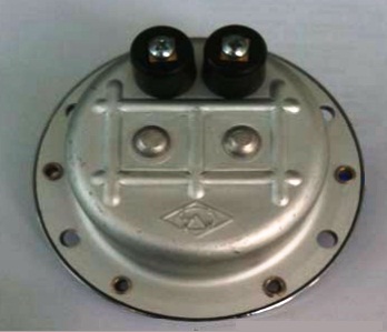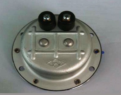 Codice Piaggio 020250 Clacson senza vite di registro, mascherina in ottone verniciata nera, diametro 72 con 4 buchi per il fissaggio, 6VAC