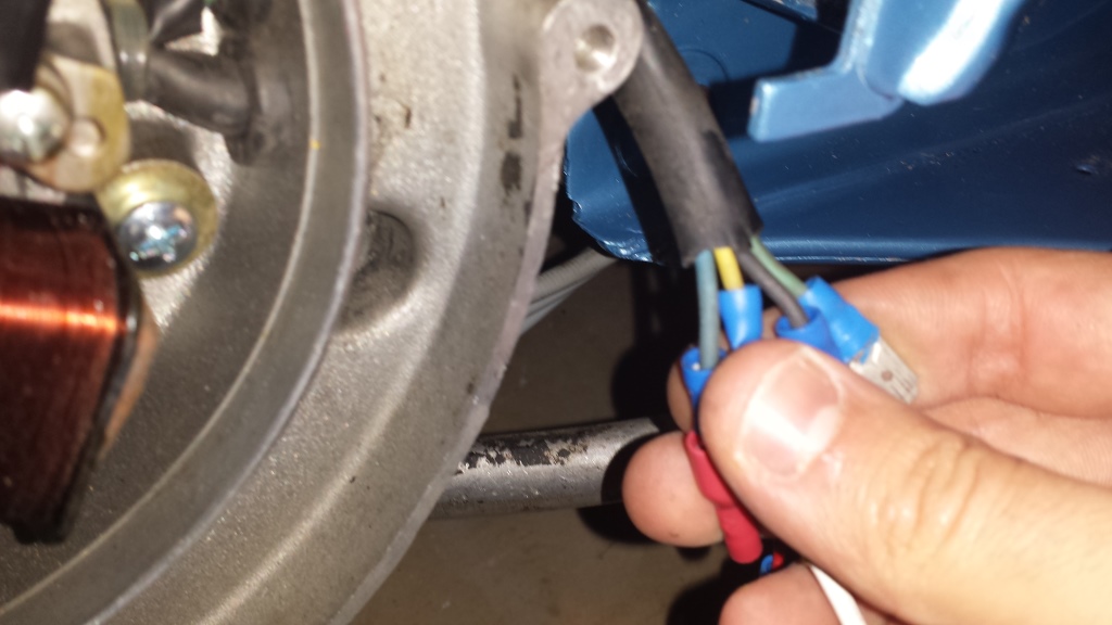 Una volta individuato il filo a 6 e quello a 12 hai due opzioni, o usi quello a 12 e cambi tutte le lampadine, o usi quello a 6 e rimani con le lampadine a 6 volt, in entrambe i casi consiglio di adottare un regolatore di tensione in linea con il filo o bruci le lampadine, quelle accensioni infatti lo hanno di serie sul telaio dei modelli che le montano.... non basterà quindi indovinare quale dei due sia a 12 e quale a 6 (un tester fa la caso tuo) servirà montare anche un regolatore... sulla mia il blu ha 12 volt. |