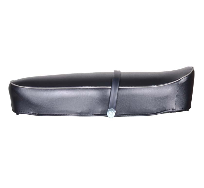 la tua sella è ottima, se guardi sotto al telaio lungo i bordi su cui si fissano le graffe, dovresti trovare due fori filettati, in quei fori si impanano le due viti testa a taglio per la cinghia in plastica blu a righe, la cinghia esiste in due misure, una per selle small tipo primavera e l'altro per selle vespa large...