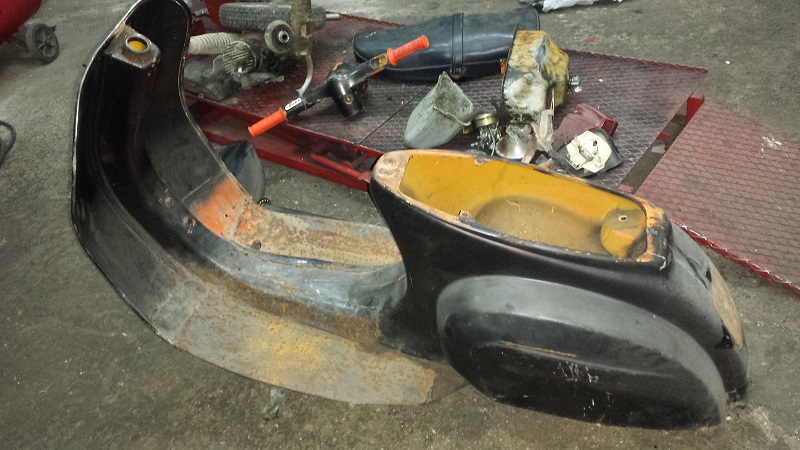 Ciao benvenuto tra noi, sabbiala e sopratutto quella pedana va sostituita, ma chi ti ha fatto quel lavoro mamma mia che robaccia! Sostituisci la pedana e portala da un buon carozzaio a farla meglio spendere qualcosina in più ma il buon lavoro almeno dura un'altra vita. Straquoto vespino controlla pure il tunnel che misa tanto che pure li c'è qualcosina sotto |