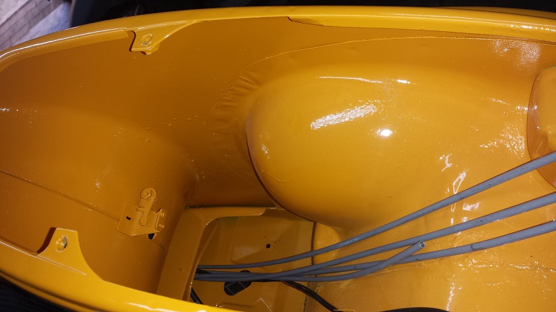 Bella! ma sembra che ci sia antirombo sotto la pedana? per il numero di telaio metti almeno della vernice trasparente! che lascia intravedere meglio il numero e non ti fa ruggine. mettila a pennelino o delimita la zona con nastro carta e dagli una sbombolettata.  se lo lasci cosi ti si arrugginisce e addio numero di telaio... |