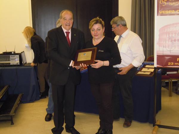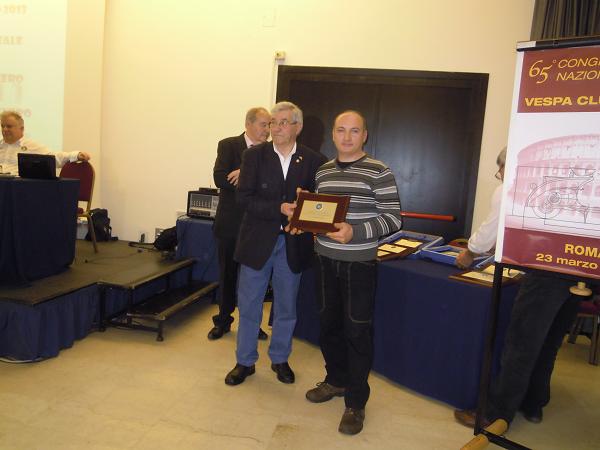 oggi ho partecipato al 65° congresso del vespa club italia fatto a roma,come sempre in compagnia della mia signora, e sono rimasto stupefatto in quanto non ci aspettavamo di arrivare 2 io e 3 qualificata mia moglie nella classifica individuale per club,almeno mi sono ho meglio dire ci siamo appagati del sacrificio fatto,evviva la vespa tra gioie e dolori,a stavolta ci siamo andati in macchina