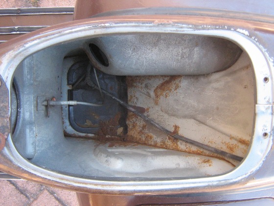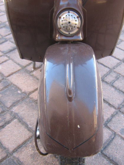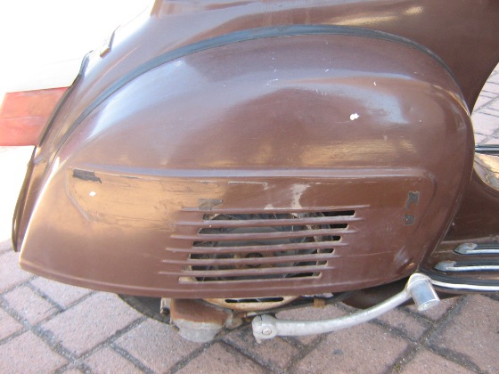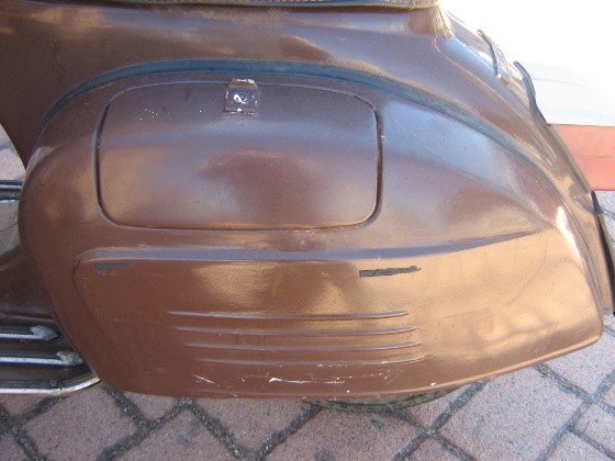 Jodreed ha ragione questa è una prima serie, la seconda serie è stata prodotta dal 1973. Sicuramente riverniciata anche la serratura dello sportellino dovrebbe essere cromata invece ha segni di vernice, per i buchi sullo scudo niente di più facile quando l'hanno rifatta di questo orribile marrone avranno stuccato i buchi sullo scudo . Poi per quanto riguarda il colore sotto il serbatoio potrebbe essere un chiaro di luna colore previsto per questa vespa |