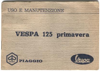 Anche se non ? un pezzo di ricambio, la cosa pi? rara che ho ? il libretto di uso e manutenzione originale della vespa 125 primavera.