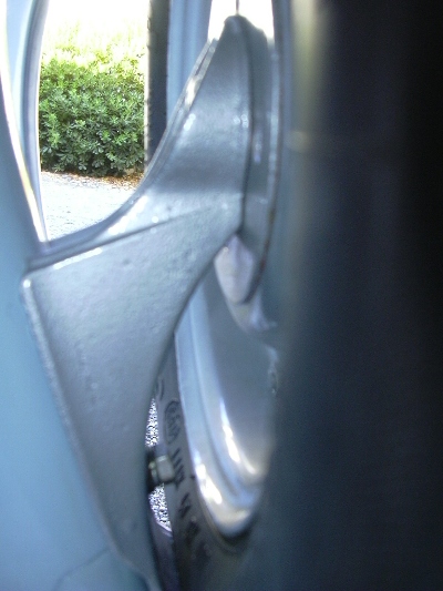 vista da davanti (la placchetta zincata tiene ferma la ruota): Immagine: